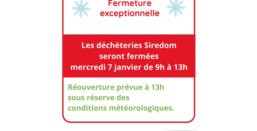 Actualités - Fermeture exceptionnelle de la déchèterie le mercredi 7 janvier de 9h à 13h