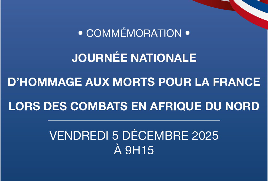 La municipalité et le comité d’entente des associations d’anciens combattants vous convient à la cérémonie en hommage à toutes les victimes militaires et civiles des conflits en Afrique du Nord.