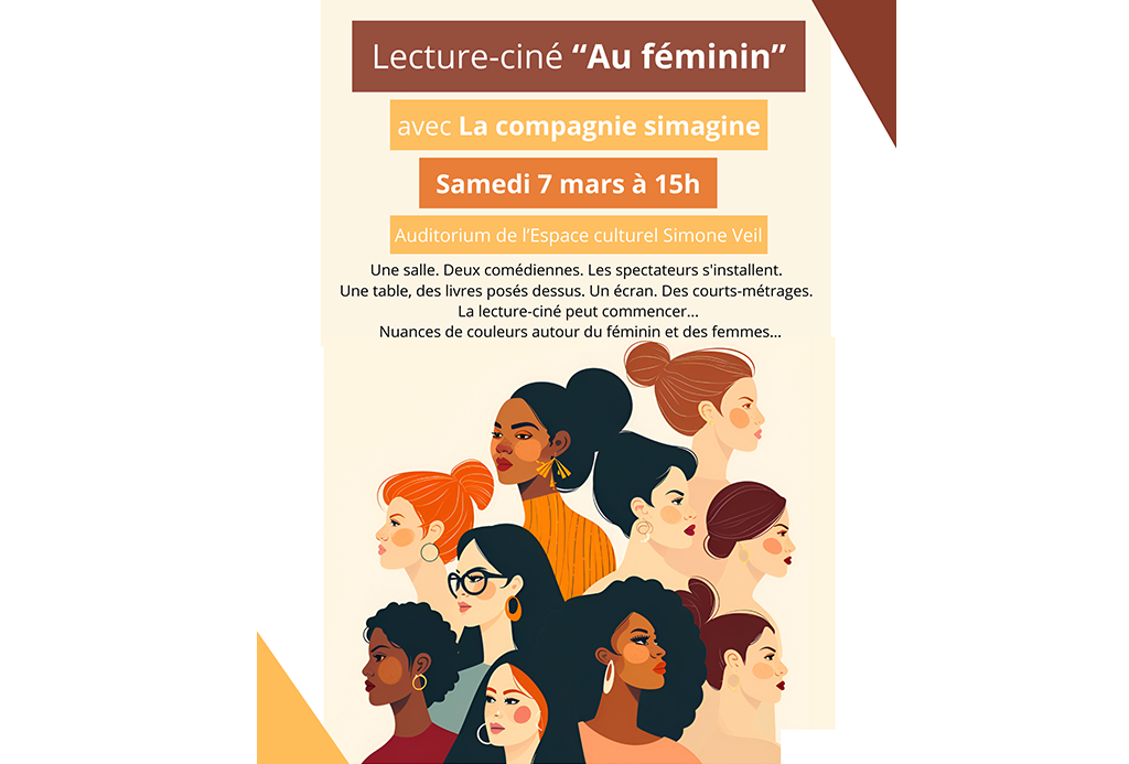 La compagnie Simagine vous propose le 7 mars une lecture spectacle “Au féminin” à l’auditorium à 15h.